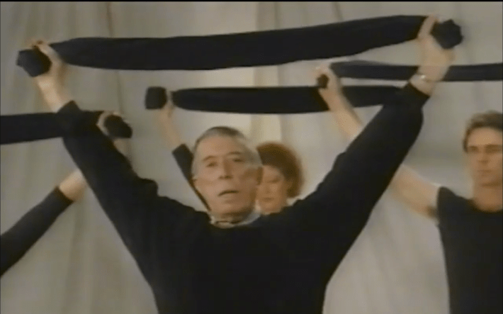 Here’s Ron teaching a class clad in all black—this was before the red Fletcher towel was produced, so they are even using black towels! (Look close and you’ll see that Ron is also wearing his signature cravat, which added a pop of color.)