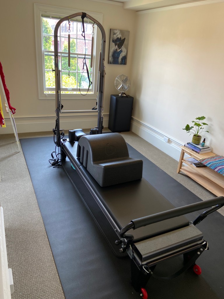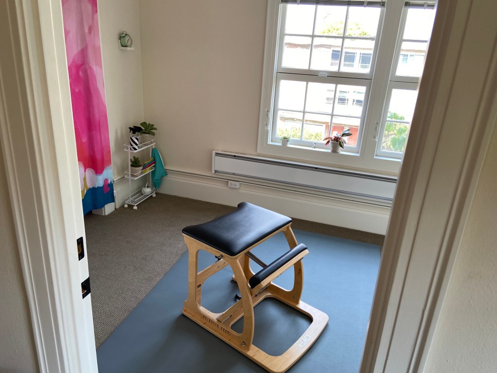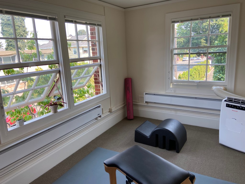 The space is unique in that it is made up of two connected rooms. One room has equipment in it and the other is fairly open and clear — I use it for teaching Pilates floorwork. The second room could be a good fit for private yoga, other movement sessions, or even a bodywork practitioner if you travel with your own table.