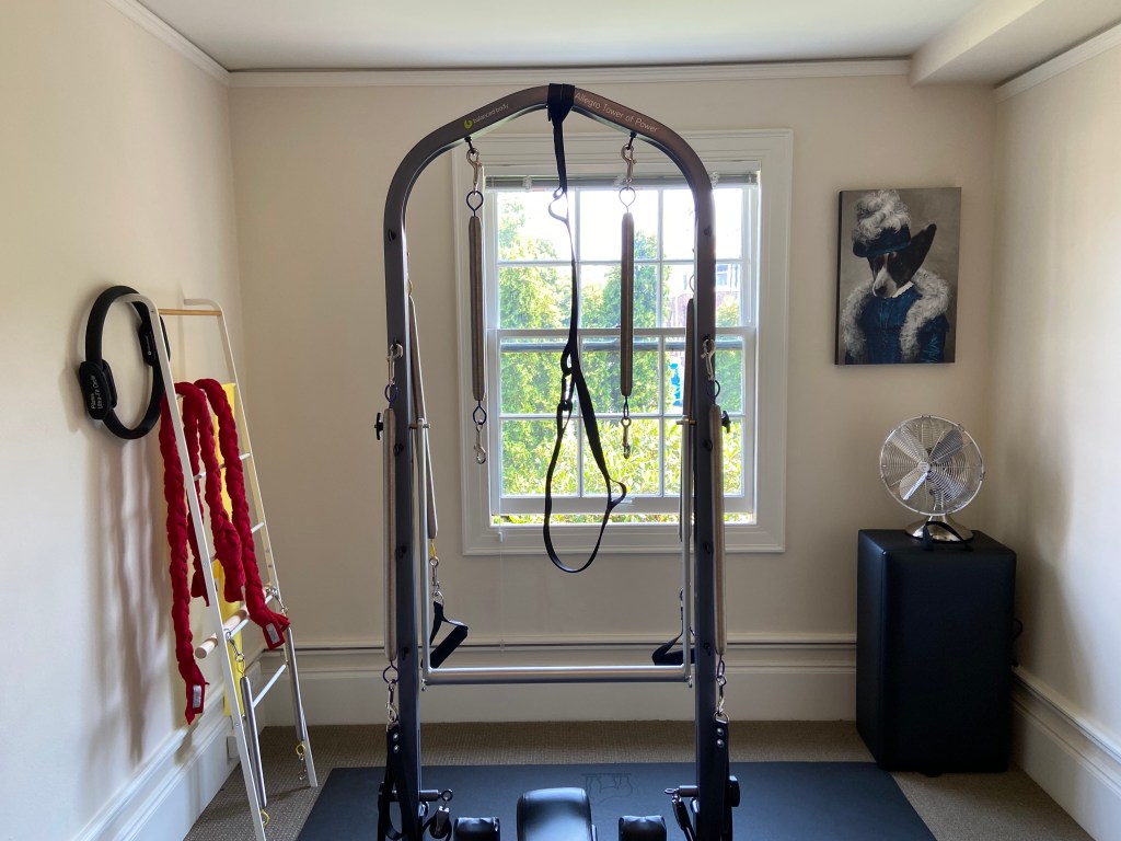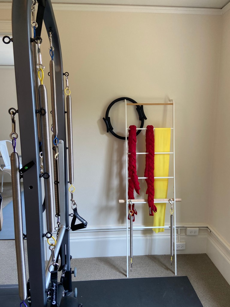 - Large equipment: Balanced Body Allegro I Reformer, Tower with Mat Conversion, and Exo Chair